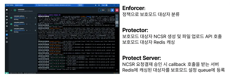 Enforcer는 Airflow에서 처리된 message를 kafka를 통해 전달받아 ABAC model의 policy를 기반으로 보호모드 대상자 여부를 판별한 뒤 Protector가 처리할 수 있도록 메시지를 kafka로 다시 발행합니다.