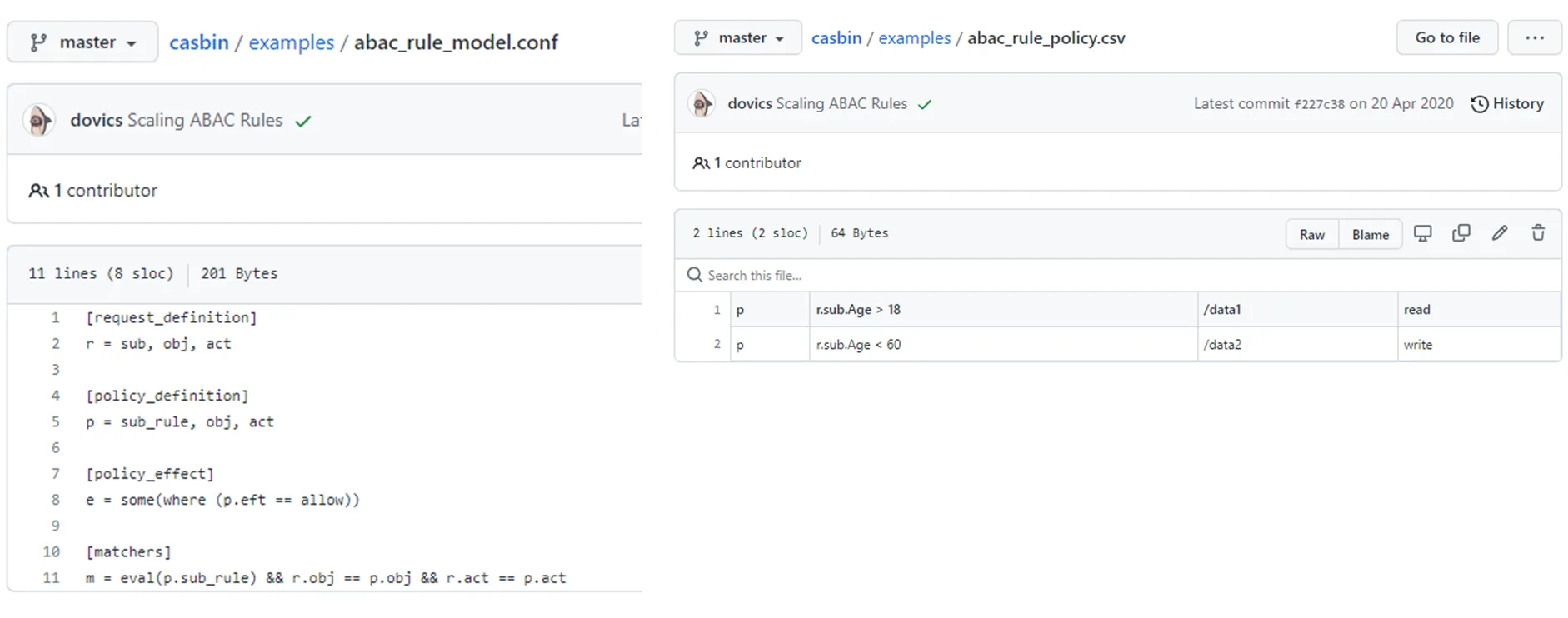 정책을 통한 보호모드 대상자 분류를 구현하기 위해 Casbin 라이브러리를 이용하여 ABAC 모델을 사용하였습니다.