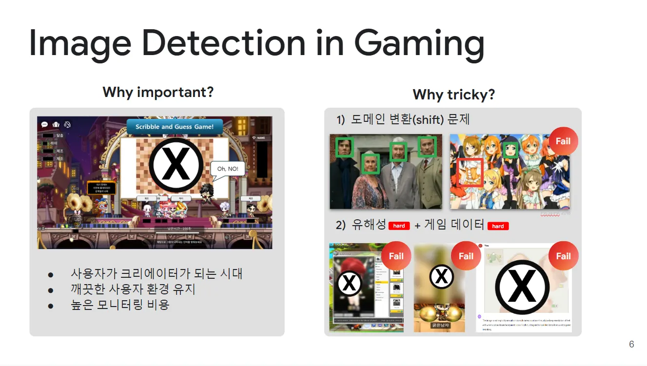 게임 산업에서 유해 이미지를 탐지하는 일은 매우 중요합니다. 오늘날 게임 유저들은 단순히 플레이어로서의 역할을 넘어, 자신만의 커스텀 아이템을 제작하고 이를 소셜미디어(SNS)에 공유하는 크리에이터로서 활동하고 있습니다. 이러한 활동은 게임 환경을 더욱 풍부하게 하지만, 때로는 부적절한 콘텐츠의 공유로 이어질 수 있어 실시간 모니터링과 신속한 대응이 필수적입니다.