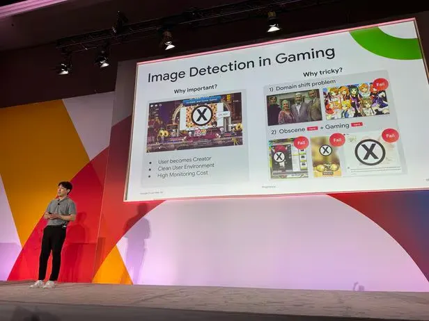 2024년 4월 10일, 미국 라스베이거스 만달레이베이 컨벤션센터에서 개최된 구글 클라우드의 연례 기술 컨퍼런스인 '구글 넥스트 2024'에서 넥슨의 발표가 주목을 받았습니다. 이 행사는 다양한 기술 혁신과 새로운 클라우드 솔루션을 선보이는 자리로, 약 35,000명 이상의 전문가와 업계 리더가 참석한 가운데, 인텔리전스랩스 선행개발실 윤준호 엔지니어는 ‘게임 산업에서의 유해 이미지 탐지’를 주제로 발표를 진행하였습니다.
